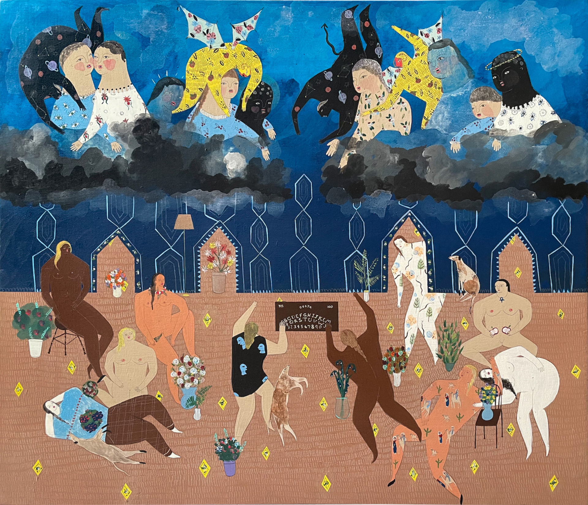Andrea Joyce Heimer is a Bellingham, Washington based artist known for her narrative, autobiographical paintings that explore themes of loneliness, identity, and the complexity of human relationships. Drawing inspiration from her own life experiences and folklore, her works are rich in symbolism, featuring intricate, storybook-like compositions. Heimer’s vibrant color palettes and detailed patterns invite viewers into deeply personal yet universally relatable worlds, capturing the nuances of emotional and social connection.