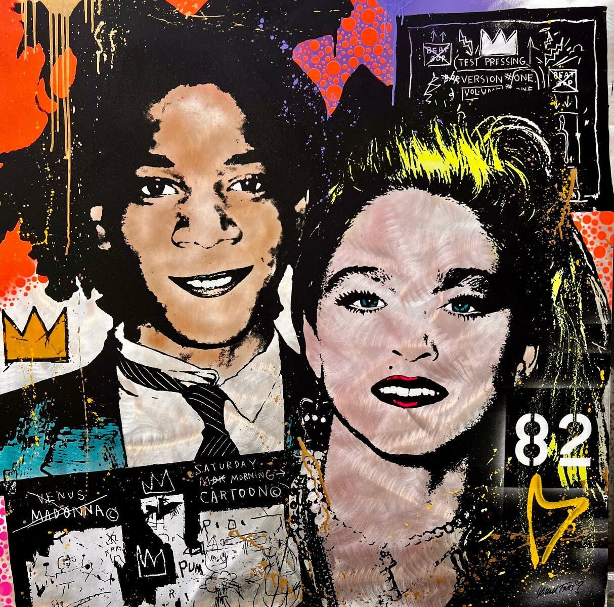 Michel Friess produces his outstanding and elaborate unique pieces completely by hand in his studio in the southwest of Germany, in Kaiserslautern. His wife Mel assists him. The dedication to detail is unmistakable. His pictures tell stories; they capture the viewer and their thoughts. There is always something new to be discovered in them. His works are created through complex working techniques such as painting, the use of spray cans, hand screen printing, paint rollers, wild splashes of paint, as well as the use of iconic newspapers, posters, rare comic books … which make every work of art absolutely unique.